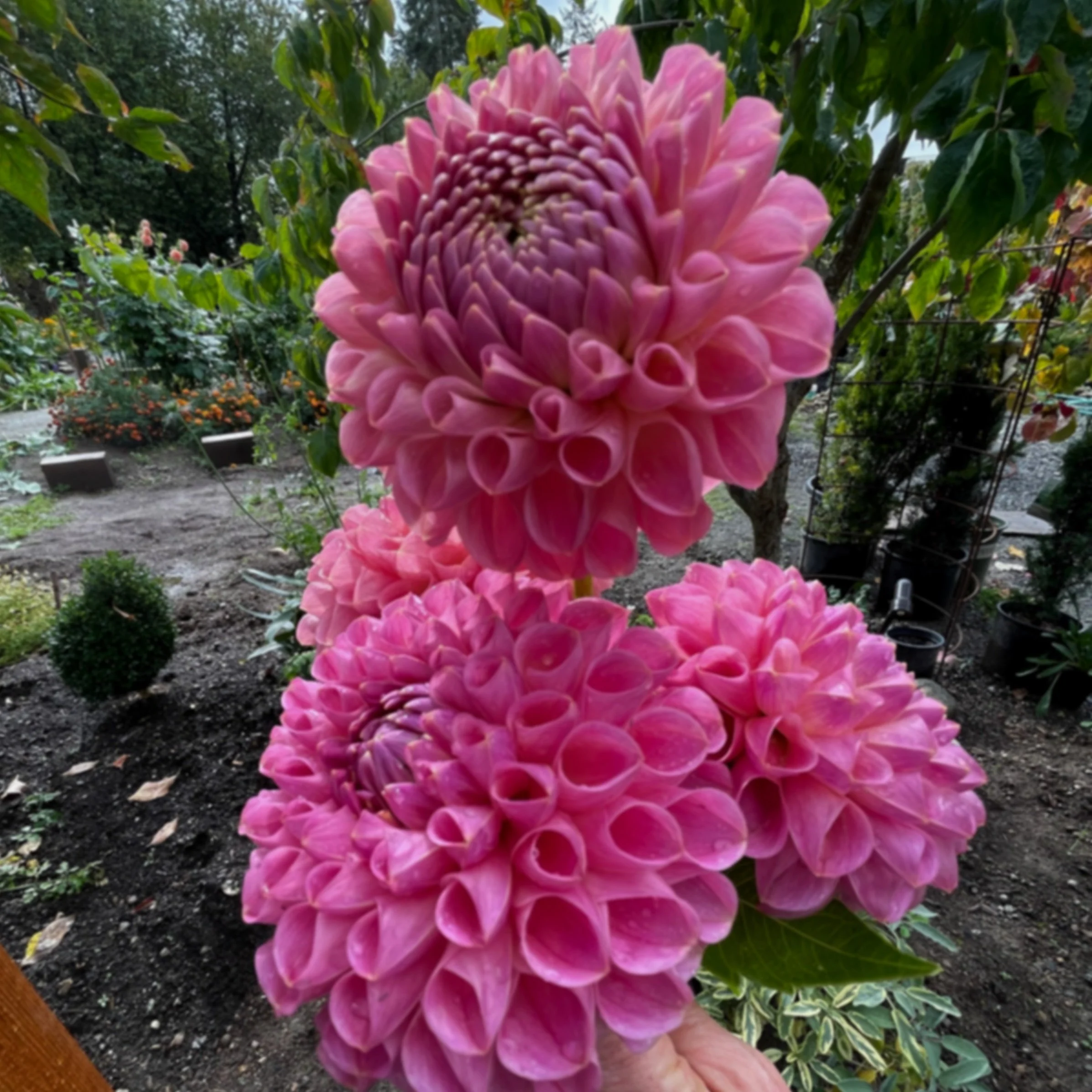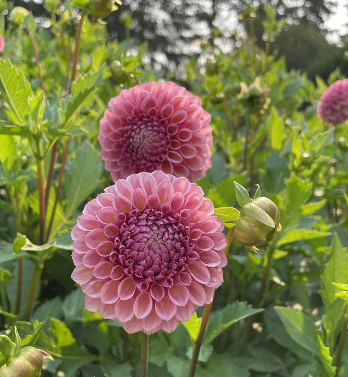 A beautiful peachy pink ball. Tall plant and she’s a little late to show but a refreshing addition to the garden when she opens. Great cut. Naturally long stems. No work to do to keep her in shape.
